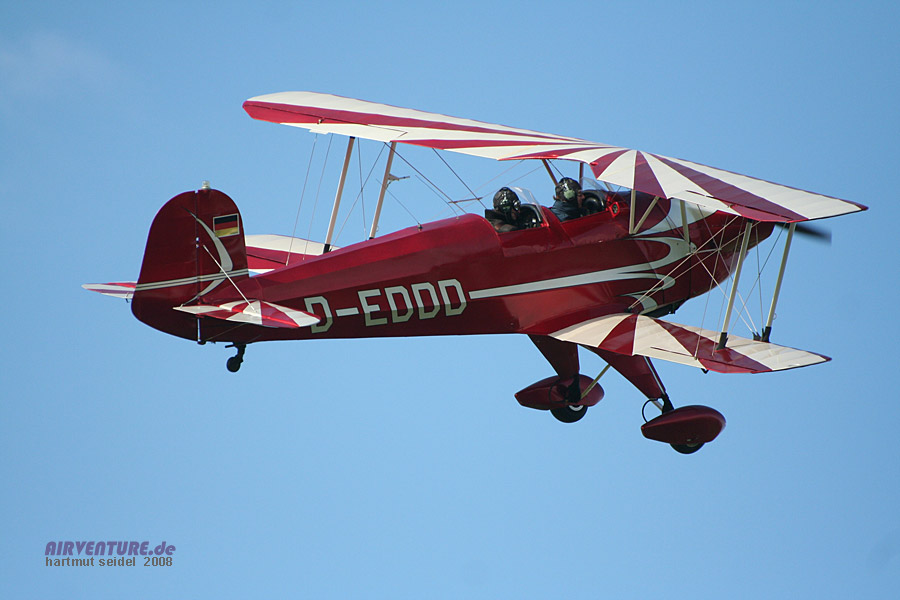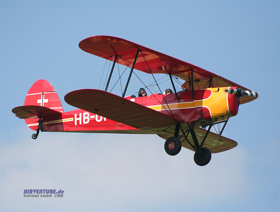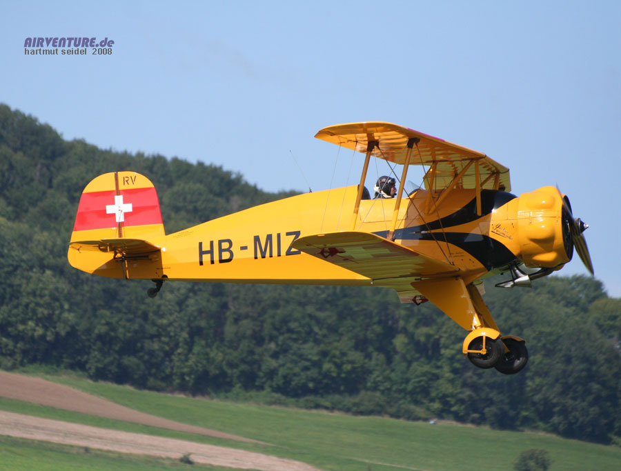 Auch von dem berühmten Kunstflug-Doppeldecker Bücker Jungmeister war ein Exemplar beim Flugtag 2008 in Hilzingen mit dabei. |