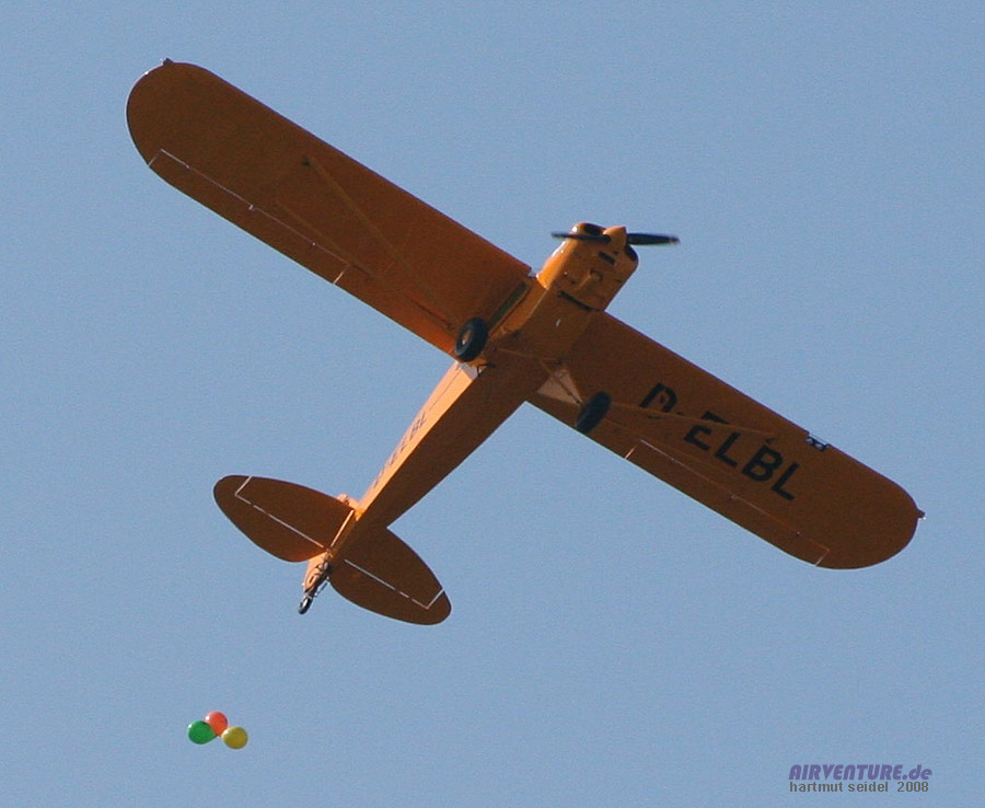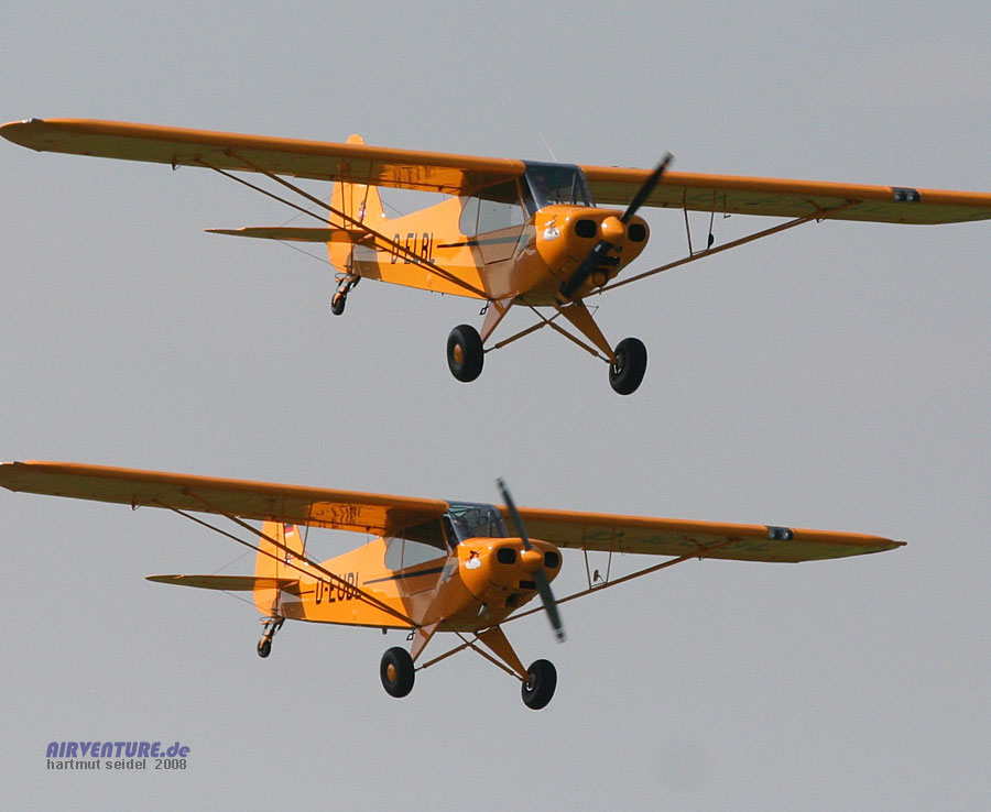 Während der Flugveranstaltung in Hilzingen am 20. und 21. September 2008 zeigte die Bravo-Lima-Formation aus Deutschland gemütliche, aber sehr schön anzusehene Formations-Flugvorführungen mit insgesamt drei Maschinen vom Typ Piper PA-18 Super Cub. |