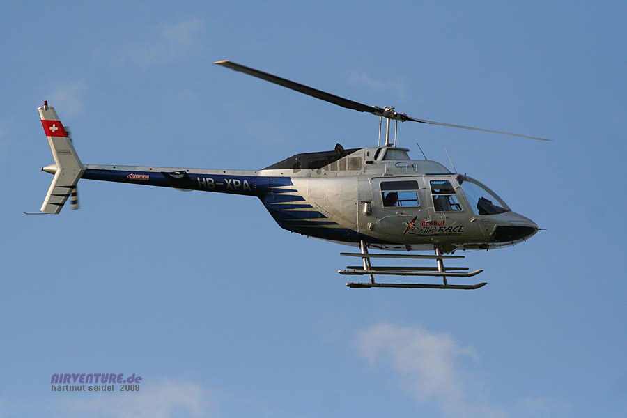 Zusätzlich zu den Mitfluggelegenheiten in den Flächenflugzeugen vom Typ Antonov An-2 und Max Holste Broussard gab es für die Besucher des Flugtag Hilzingen 2008 auch die Möglichkeit zu Rundflügen mit diesem Hubschrauber vom Typ Agusta-Bell Jet Ranger der schweizerischen Firma Skymedia ( www.sky-media.ch ). |