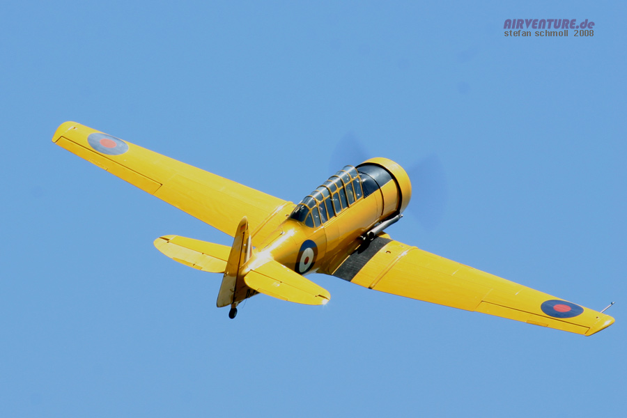 Zwischen all den historischen Sport- und Trainingsflugzeugen haben sich auch zwei echte Brummer auf den Weg nach Hirzenhain gemacht. Georg Raabs Harvard ist vielen deutschen Airshow-Fans ein Begriff. Es ist einfach großartig, wenn die gelbe Maschine mit ihren 600 PS über die Bahn fegt. |