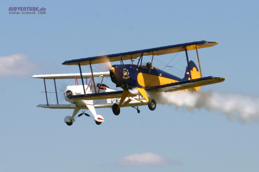 Hans Nordsiek aus Holland und seine Frau begeistern mit ihrer eleganten "Old Crow" das Publikum nicht nur in der Luft. Sie kennen Mensch und Maschine noch nicht? Dann schauen Sie einmal hier: http://www.thestoryteller.nl/engels/vertrek.htm und lassen sich verzaubern.