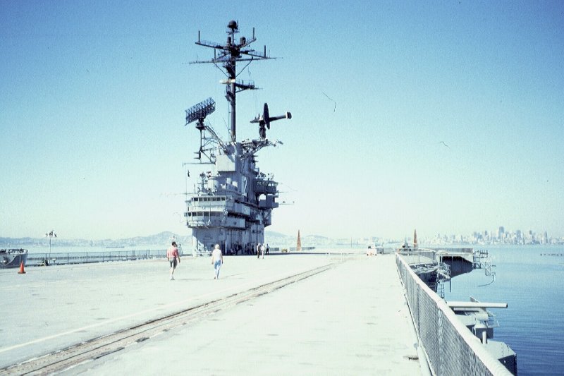 Flugzeugträgers USS Hornet. Hier kann man Fangseile und -netz sowie die riesigen Aufzüge