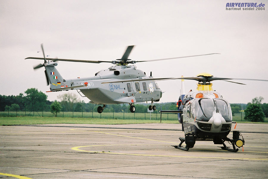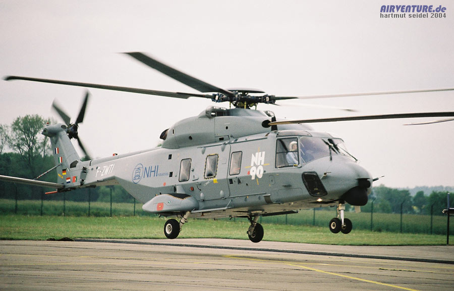 ein Hubschrauber vom Typ NH Industries NH 90 vorgeführt. Hier startet der NH 90 gerade