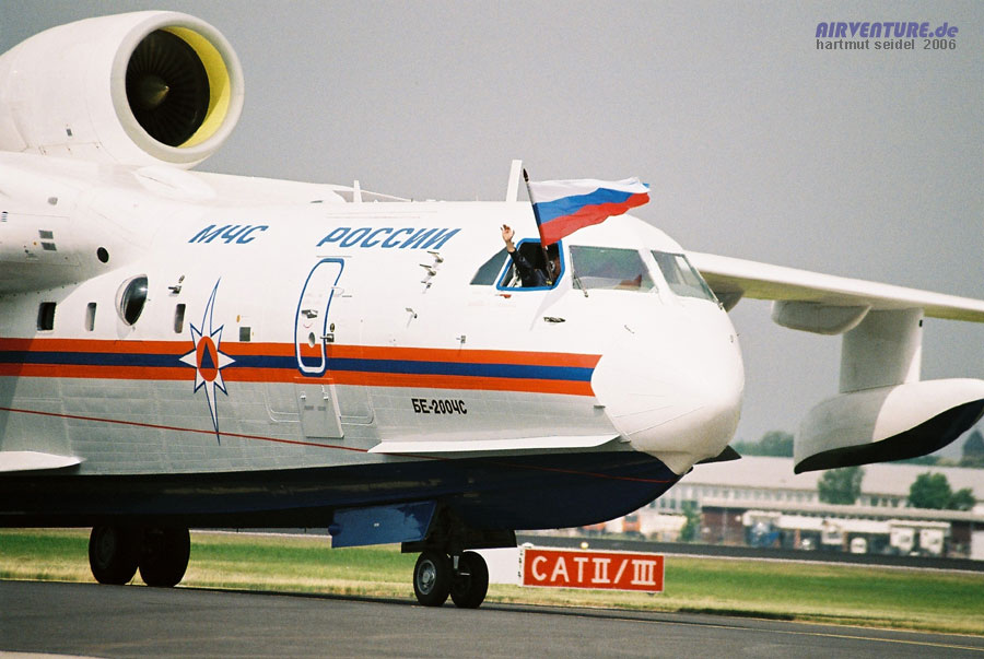 grüßte die Besatzung der Berijev Be-200 das Publikum der ILA 2006 während des