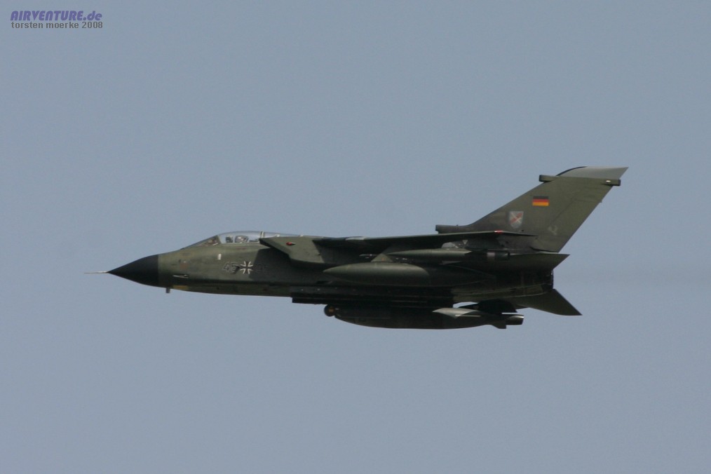 Im Rahmen der umfangreichen Einsatzdemonstration "Evakuierung aus einem Kriesengebiet" kamen auch etliche Kampfflugzeuge vom Typ Panavia Tornado der deutschen Luftwaffe in verschiedenen Varianten zum Einsatz. So erfolgte zum Beispiel die Aufklärung der Landezone, in der die zu evakuierenden Zivilisten auf die rettende Transall warteten, durch Maschinen vom Typ Panavia Tornado des Aufklärungsgeschwaders 51 "Immelmann". |