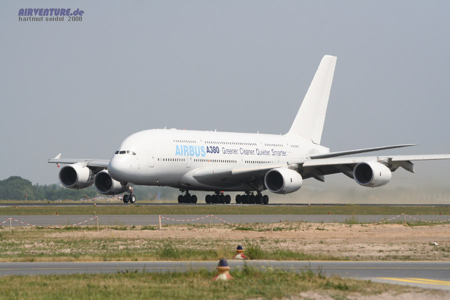 Beim Erscheinen dieses Teils 4 unseres großen Berichts über die ILA 2008 in Berlin ( Anfang November 2008 ) hatten bereits drei Fluggesellschaften ihre ersten Maschinen vom Typ Airbus A 380 in Dienst gestellt : Singapore Airlines, Emirates und QANTAS. Zu besagtem Zeitpunkt lagen von weltweit 16 Fluggesellschaften etwa 200 Bestellungen für den Airbus A 380 vor. |
