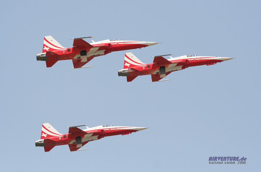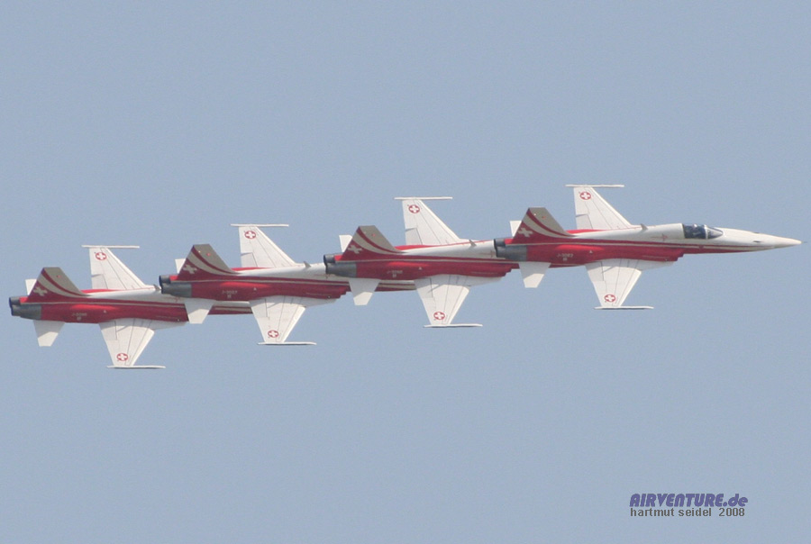 Ein besonders eindrucksvoller Bestandteil der Patrouille Suisse-Vorführungen ist jeweils die Figur "Shadow", bei der vier Maschinen vom Typ Northrop F-5 E Tiger II in einer eng gestaffelten Formation fliegen, so daß eine Maschine jeweils wie der Schatten (= Shadow ) der anderen Maschine aussieht. Der Abstand der Flugzeuge zueinander beträgt dabei nur etwa 3 Meter!