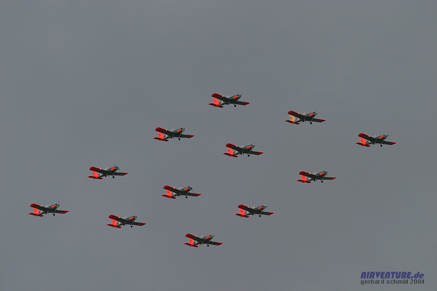 Formationsflugvorführungen von 12 Schulflugzeugen vom Typ Valmet L-70 Vinka der