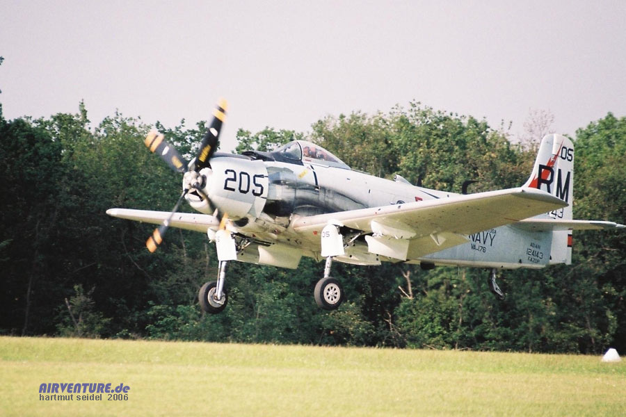 Skyraider gehört der Amicale Jean-Baptiste Salis. Das Flugzeug befindet sich seit 1985 in