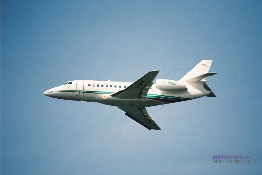einem modernen Flugzeug vom Typ Dassault Falcon 2000 gebildet wurde. |