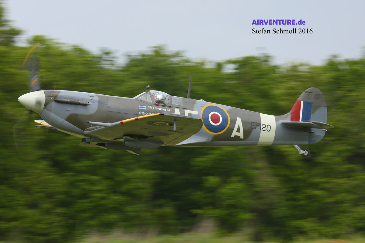 Die britische Luftwaffe wurde in diesem Jahr durch die Supermarine Spitfire Mk.V EP120 (ebenfalls von der Fighter Collection aus Duxford) vertreten. Die in Frankreich beheimatete Hawker Sea-Fury F-AZXJ war zu schwer für die Bahn und konnte nur am Boden bestaunt werden.