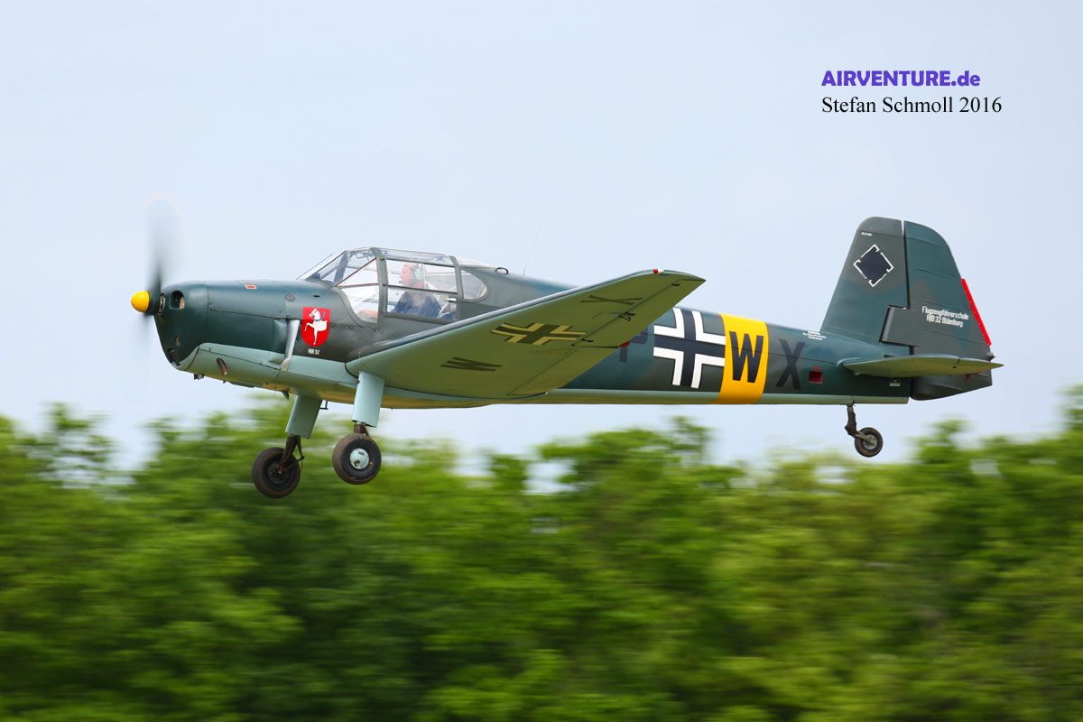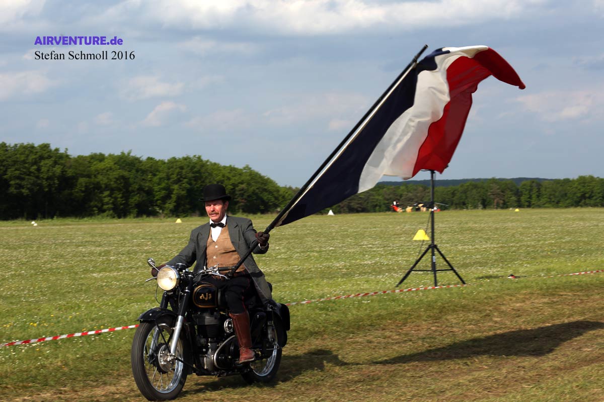 Christophe Bruneliere brachte am Sonntagvormittag die Douglas Skyraider F-AZHK aus Avignon rüber. Leider blieb sie - wie auch die F-AZDP - danach am Boden. Der mächtige Warbird ist in der gleichen Gewichtsklasse wie die dreimotorige Junkers 52 - aber für die beiden Trägerflugzeuge war der weiche Boden nach dem ausgiebigen Regen der letzten Tage nicht geeignet.