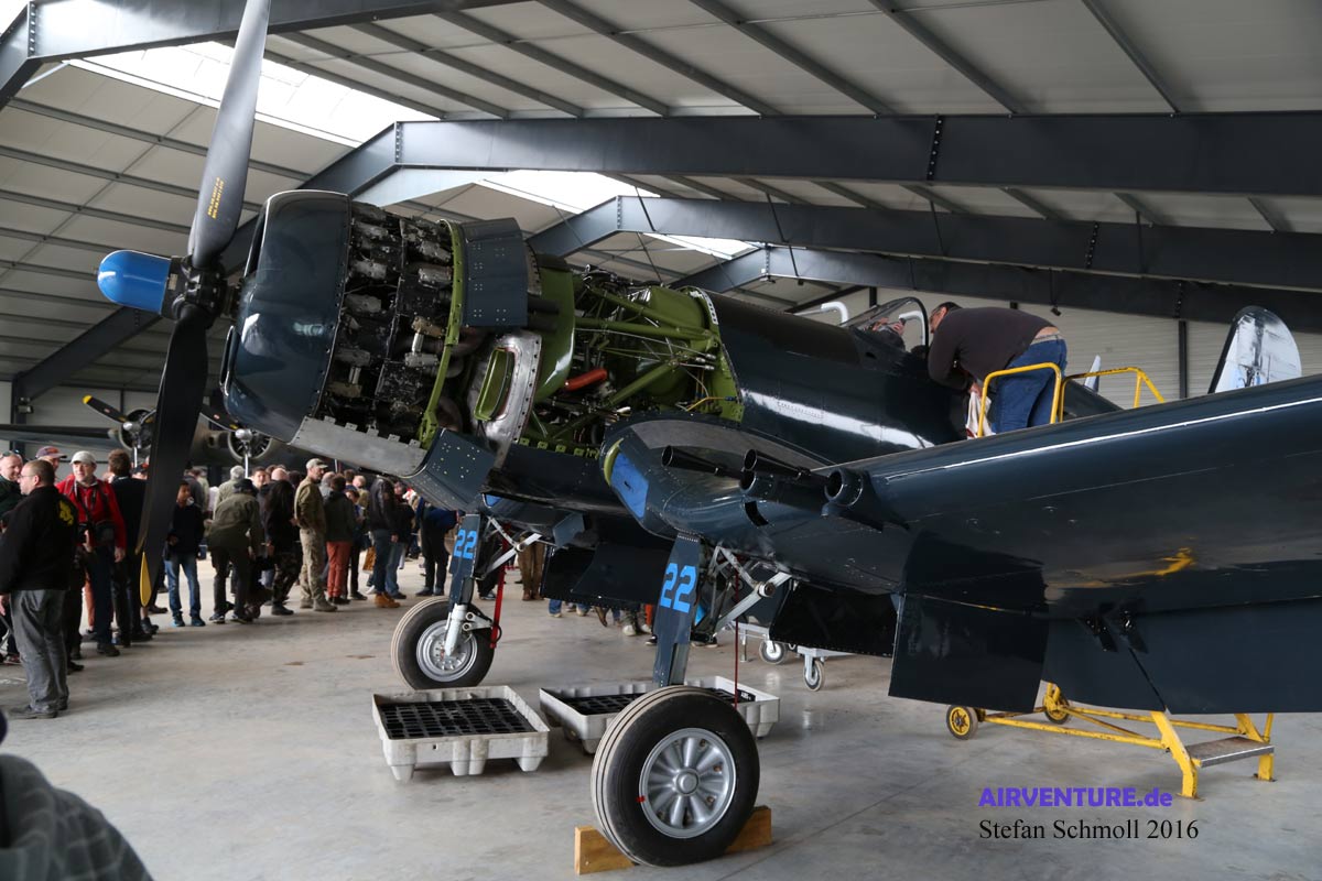 Leider was die Vought Corsair der Familie Salis nur in der Halle zu bestaunen. Die F-AZEG ist seit nunmehr 30 Jahren in La Ferté Alais beheimatet. Im Laufe dieses Sommers sollte sie wieder in der Luft sein. |