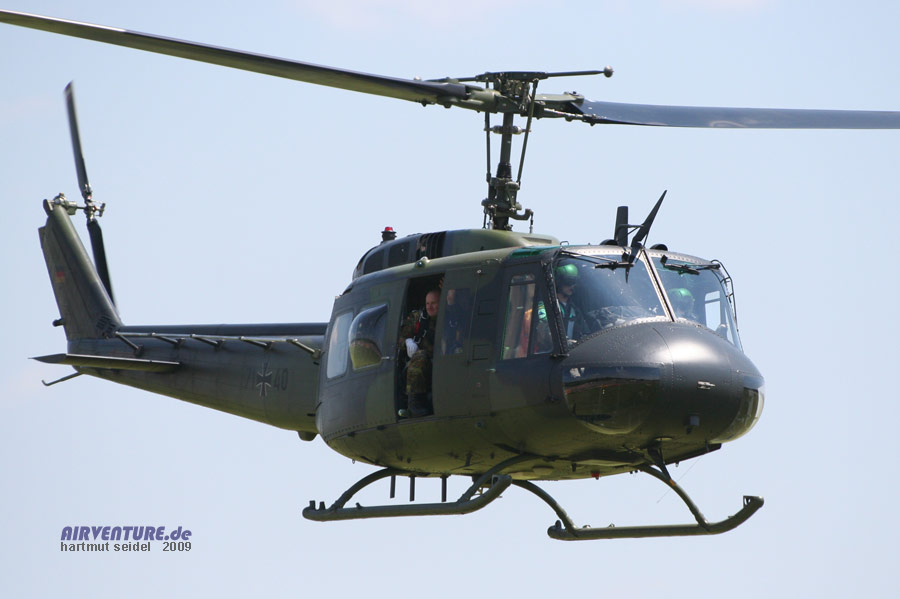 Die deutsche Bundeswehr war noch mit einem weiteren Bell UH-1D Hubschrauber auf dem Flugplatz Langenselbold vor Ort, mit dem Fallschirmspringer eines Luftlandefernmeldebataillons abgesetzt worden sind. |
