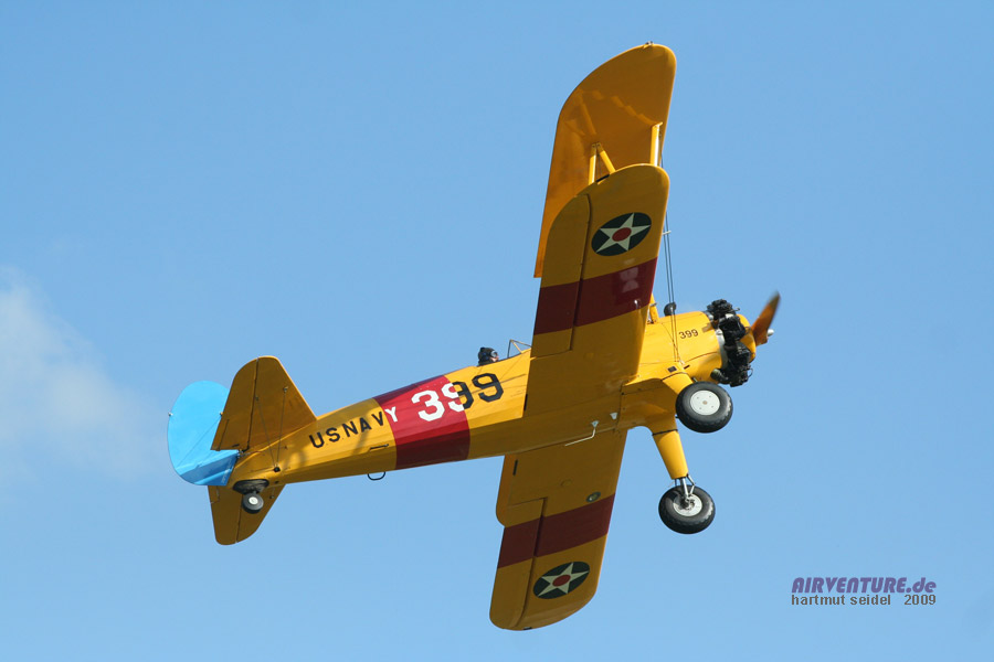 Mit diesem von Georg Raab geflogenen Boeing Stearman im historischen "Yellow Peril" U.S. Navy Traineranstrich war auch noch eine zweite Maschine dieses Typs beim FFH-Flugtag 2009 in Langenselbold zu sehen. |