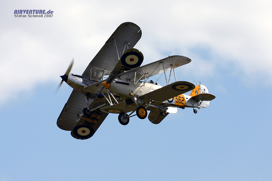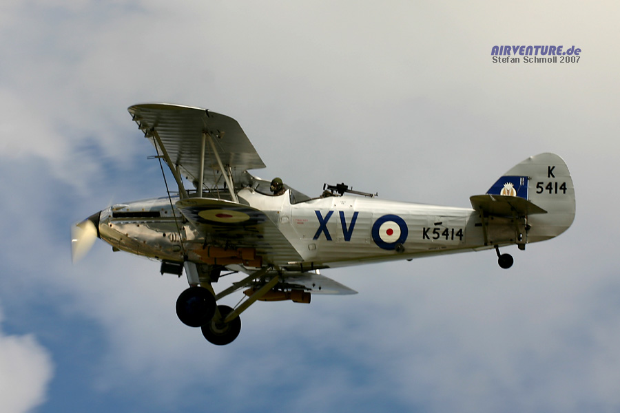 Gleich zwei Hawker Doppeldecker aus den dreißiger Jahren waren bei Flying Legends gemeinsam in der Luft. Die Hawker Hind der Shuttleworth Collection wurde von der Nimrod der Historic Aircraft Collection begleitet.
