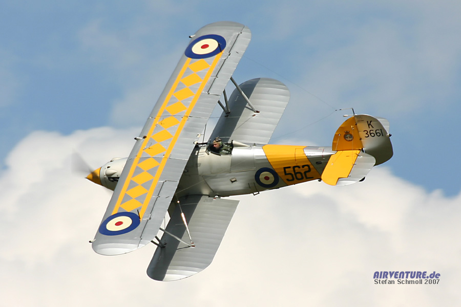 In Duxford gibt es mittlerweile sogar ZWEI flugfähige Hawker Nimrods. Neben der hier gezeigten Nimrod II K3661 der Historic Aircraft Collection besitzt die Fighter Collection die Nimrod I S1581. Letztere wurde vor einigen Jahren gegen eine Hawker Hurricane eingetauscht. |