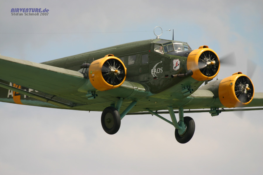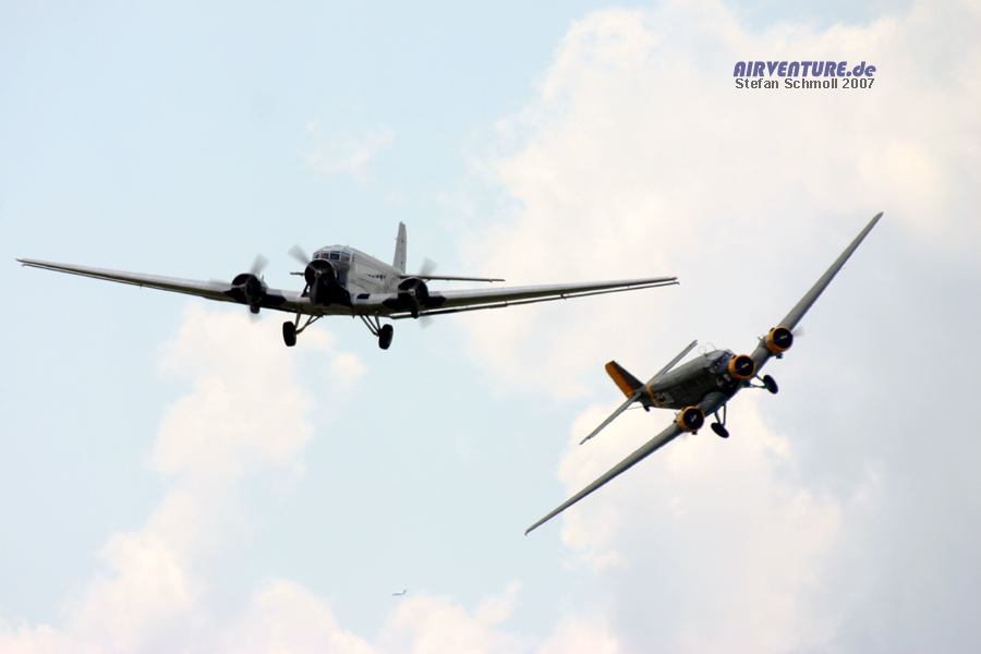 Gleich zwei Junkers Ju 52 waren bei Flying Legends vertreten. Neben der Lufthansa `D-AQUI´ war auch die in La Ferté Alais stationierte Maschine vertreten. |