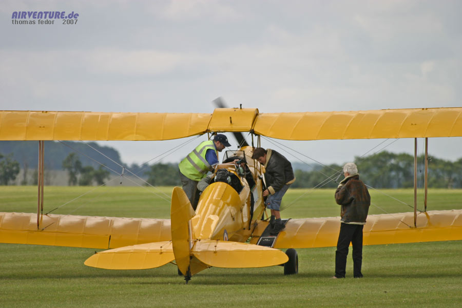 Für die Besucher, die sich den Wind um die Ohren pusten lassen wollten, gab es auch Rundflüge in der de Havilland DH-82 Tiger Moth. In England ist dieser Doppeldecker noch auf vielen Flugplätzen anzutreffen. |