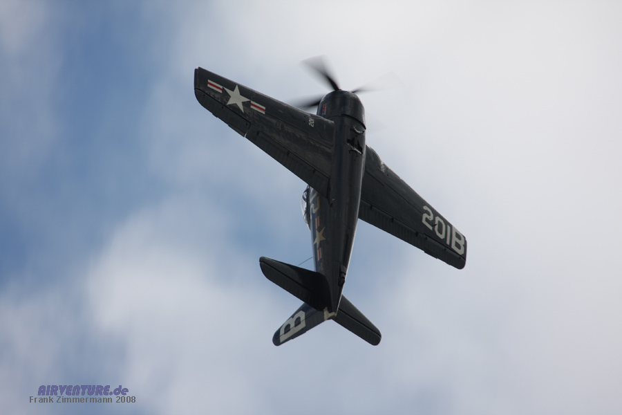 Ein wichtiger Bestandteil des Balbo ist der Joker. Steven Grey flog rasant die F-8F Bearcat im Solo-Display, während die anderen Flugzeuge ihre Runden drehen.