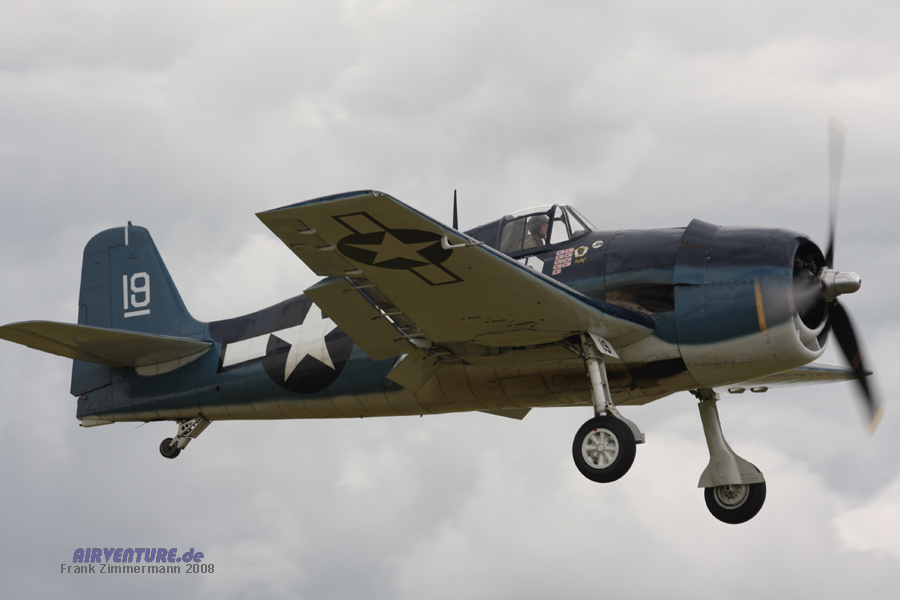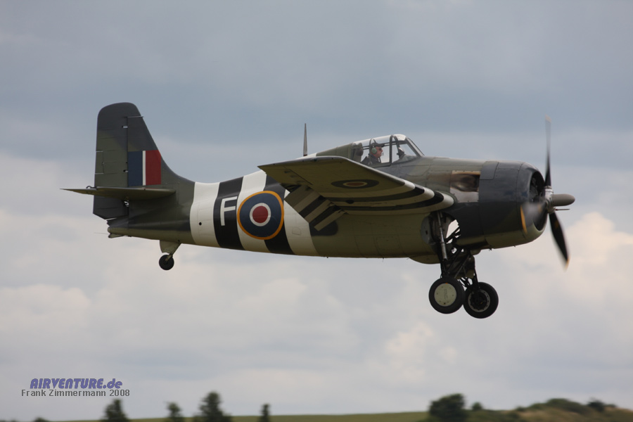 Die Grumman F6F-5K Hellcat der Fighter Collection beim Landeanflug auf die Graspiste. Am Steuer saß Carl Schofield.