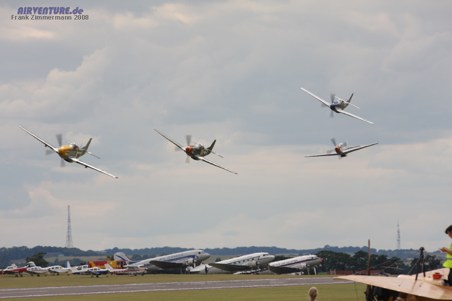 Vier P-51 Mustangs donnern in ca. 15 Metern über die Runway, angeführt von der "Ferocious Frankie". Ein Anblick, der das Herz eines jeden Warbirdfans höher schlagen lässt.