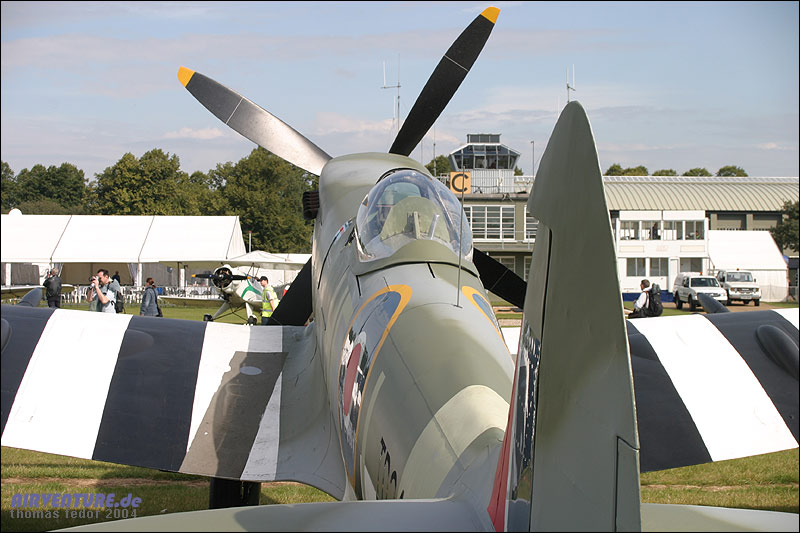 Einmal kurz in die Hocke und die Spitfire ist allein mit den Wolken. |