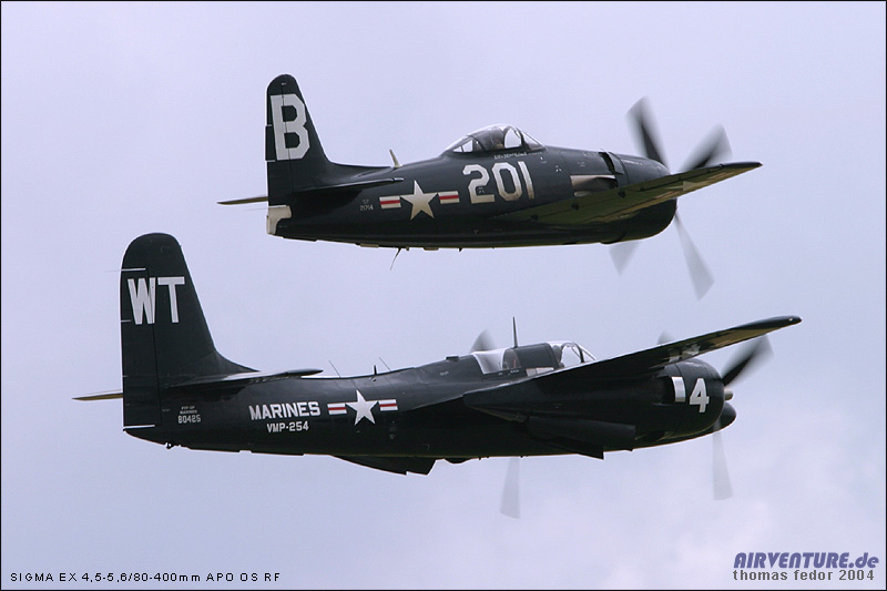 amerikanischen Propellerjäger-Entwicklung: Die Grumman F-8F Bearcat (oben) und die