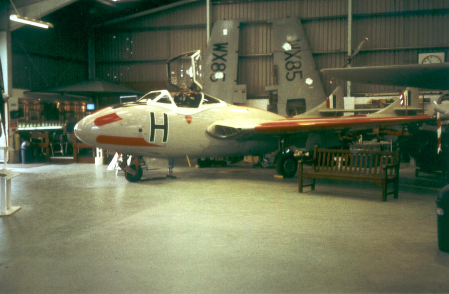 in Farnborough vorgestellte Flugzeug. Diese Vampire T.11 mit der Kennung XJ772 ist ein