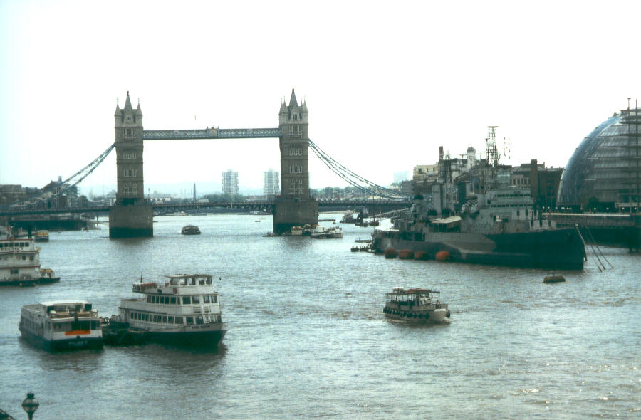 Bridge, liegt der Kreuzer HMS Belfast vor Anker. Das Schiff kann komplett besichtigt