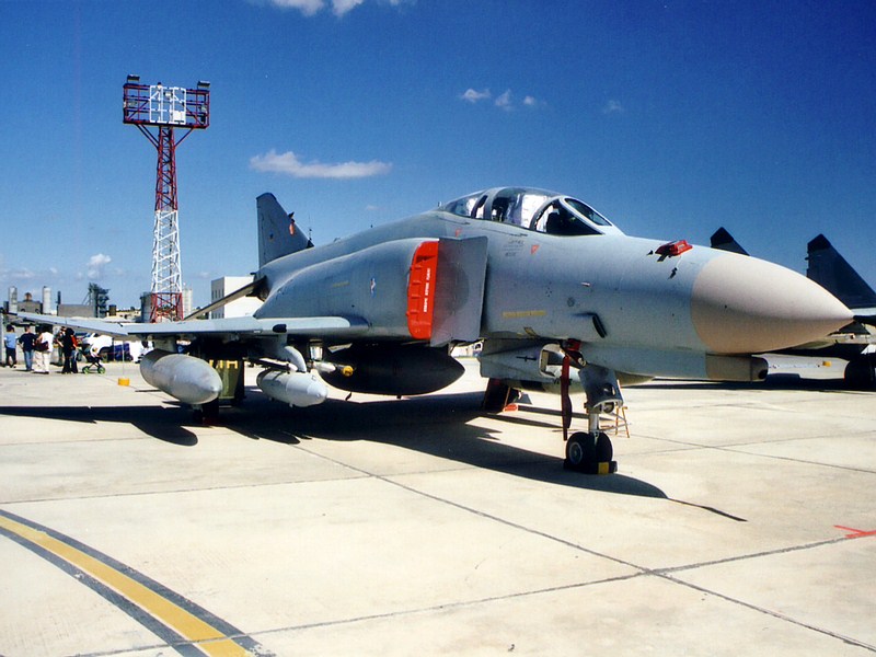 F-4 Die F-4 Phantom trägt unter Rumpf und Tragflächen mehrere Zusatztanks mit sich. Zwei General Electric J-79-GE-17 haben eben mächtig Durst.