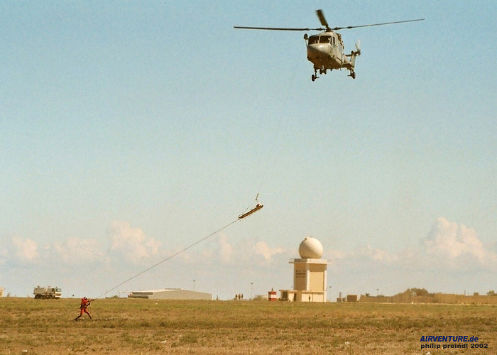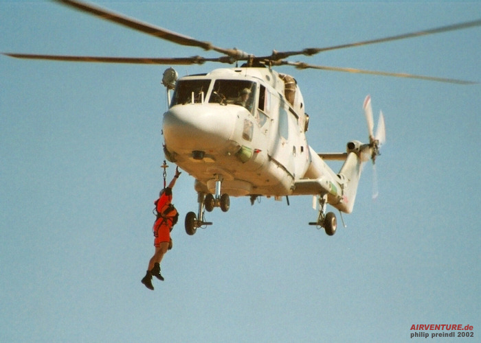 Bezeichnung Westland Lynx bekannt. Hier wird gerade ein Besatzungsmitglied