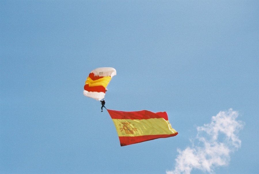 Fallschirmspringerteams zeigten in Malta ihr Können. Hier der Flaggenspringer des