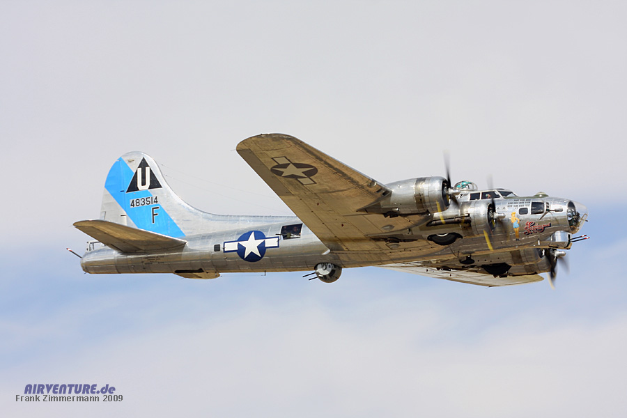 Als einziger Vertreter der schweren Viermots war die Boeing B-17 "Sentimental Journey" im Showprogramm vertreten. Die B-24 Liberator und die Boeing B-29 Superfortress der CAF waren leider nicht einsatzbereit. |
