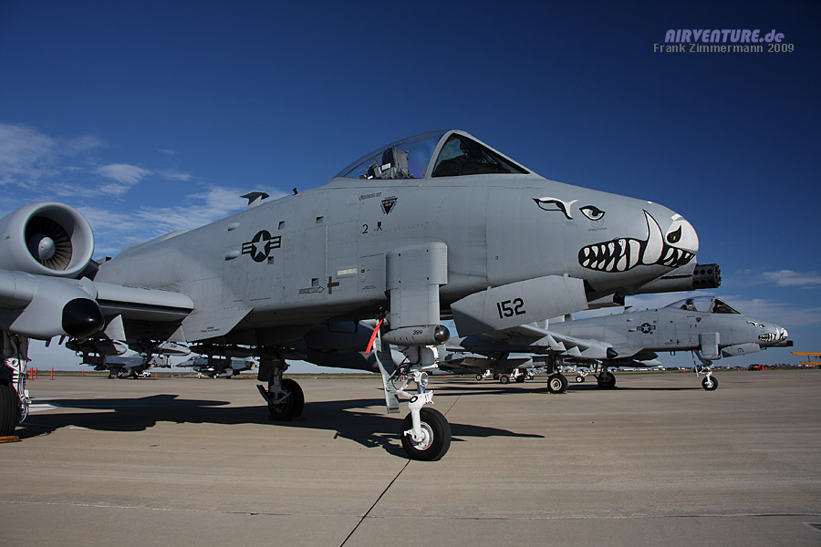 Wenn auch nicht während der Airshow zu bewundern, so machten diese beiden Fairchild A-10 Thunderbolt II auch am Boden eine gute Figur. Die A-10 wird auch "Warthog" (Warzenschwein) genannt, die Noseart stellt dem entsprechend das Maul eines solchen Tieres dar.