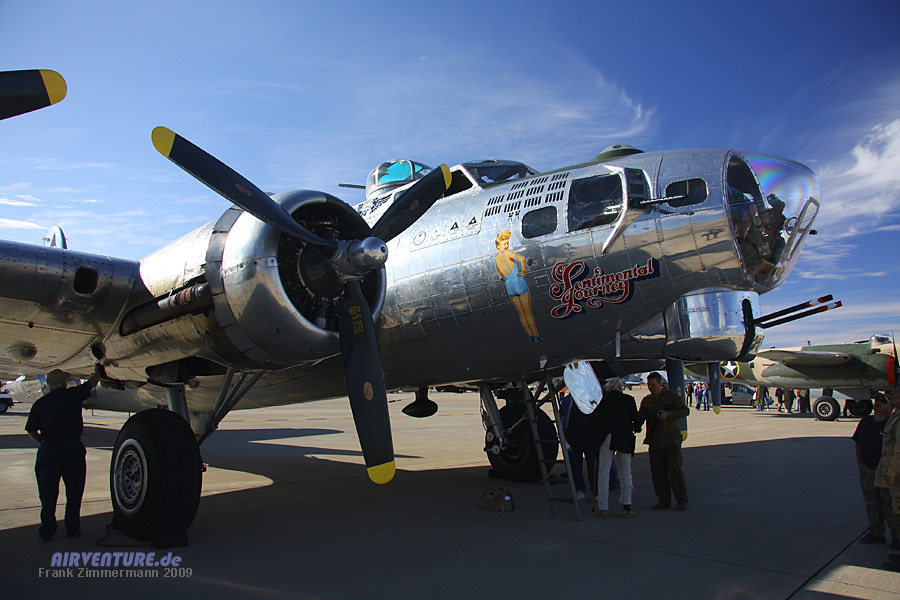 Auf Hochglanz poliert präsentierte sich die Boeing B-17 Flying Fortress "Sentimental Journey" die Noseart zeigt die berühmte amerikanische Schauspielerin Betty Grable. Auf amerikanischen Airshows ist es kein Problem, sich die Maschinen auch von innen anzusehen bzw. zu fotografieren.