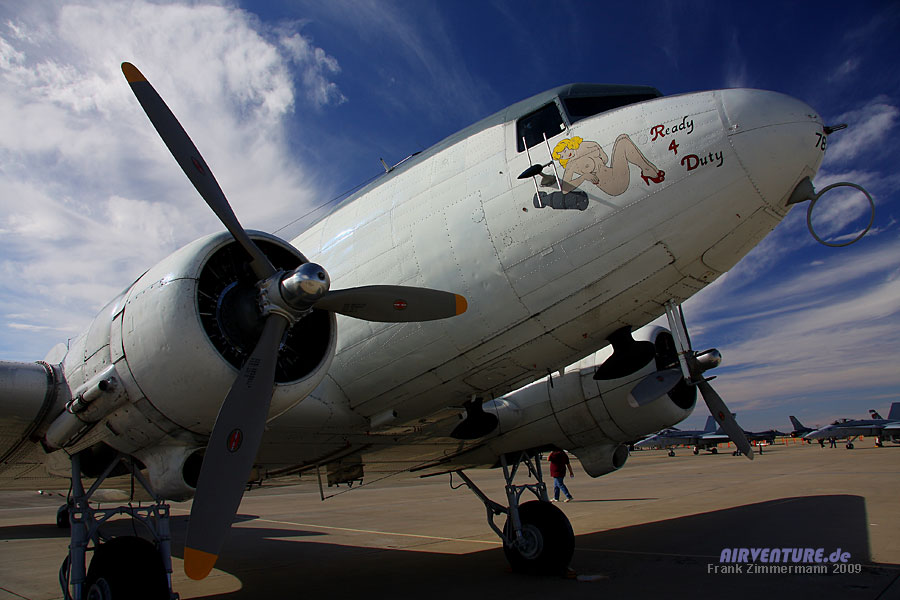 Bei der US Navy wurde die Douglas C-47 unter der Bezeichnung R4D "Skytrain" geführt. Hier schön Fotografengerecht vorgeflogen von den Piloten des Dallas Fort Worth Wing aus Texas .