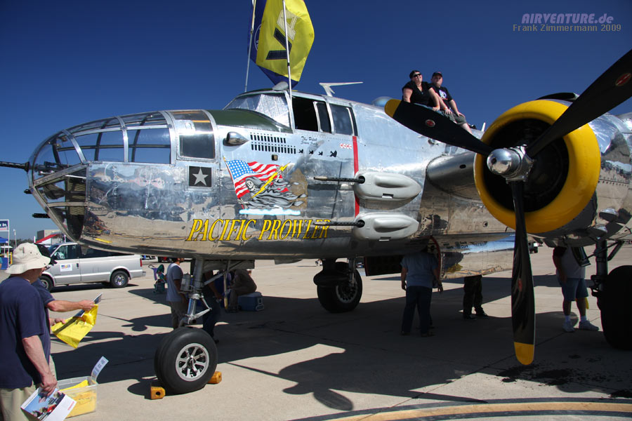 Von den bei North American gebauten fast 10000 Exemplaren gibt es weltweit noch rund 15 fliegende Maschinen. Die meisten davon - wie könnte es anders sein - in den USA. Zu diesen Überlebenden gehört auch die hochglanzpolierte "Pacific Prowler". |