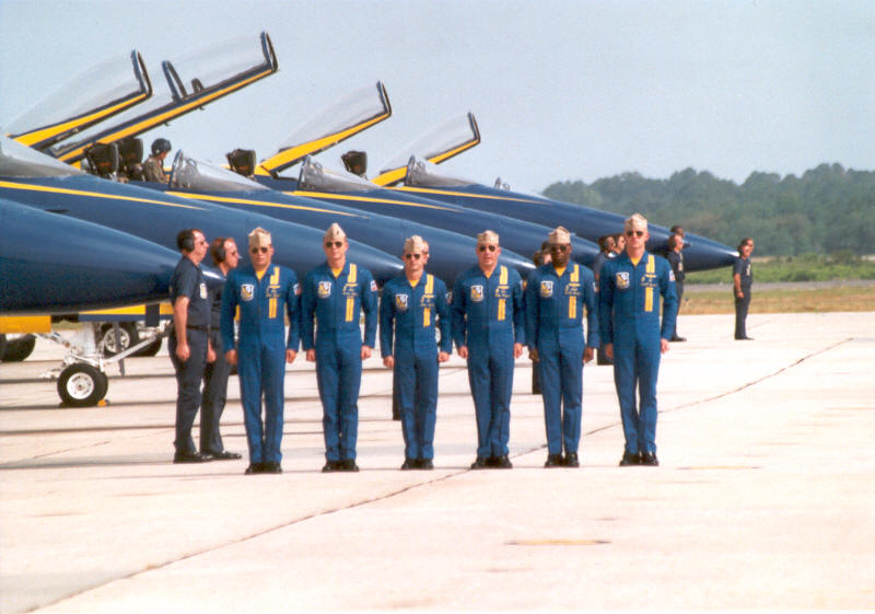 der Blue Angels. Dienstkleidung des gesamten Teams ist ein eng geschnittener, blauer