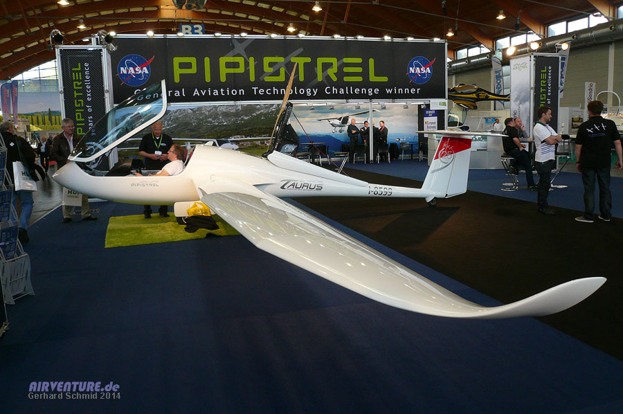 Pipistrel war mit dem side-by-side Doppelsitzer Taurus M angereist. Hervorragende Flugleistungen dank Einziehfahrwerk und Klapptriebwerk verspricht der Hersteller mit diesem UL-Motorsegler, der wahlweise auch mit Elektroantrieb zu haben ist. |