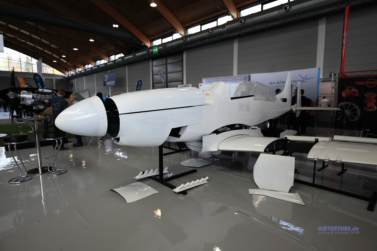 Unschwer zu erkennen, dass diese Einzelteile am Ende eine Mustang ergeben sollen - natürlich in verkleinertem Massstab von 75% und für etwas weniger Geld als man für ein Original auf den Tisch blättern muss. Als UL mit 100 PS Rotax Antrieb flugfertig ab 155.000 EUR, aber auch als Echo-Klasse Experimental mit bis zu 600 PS erhältlich.