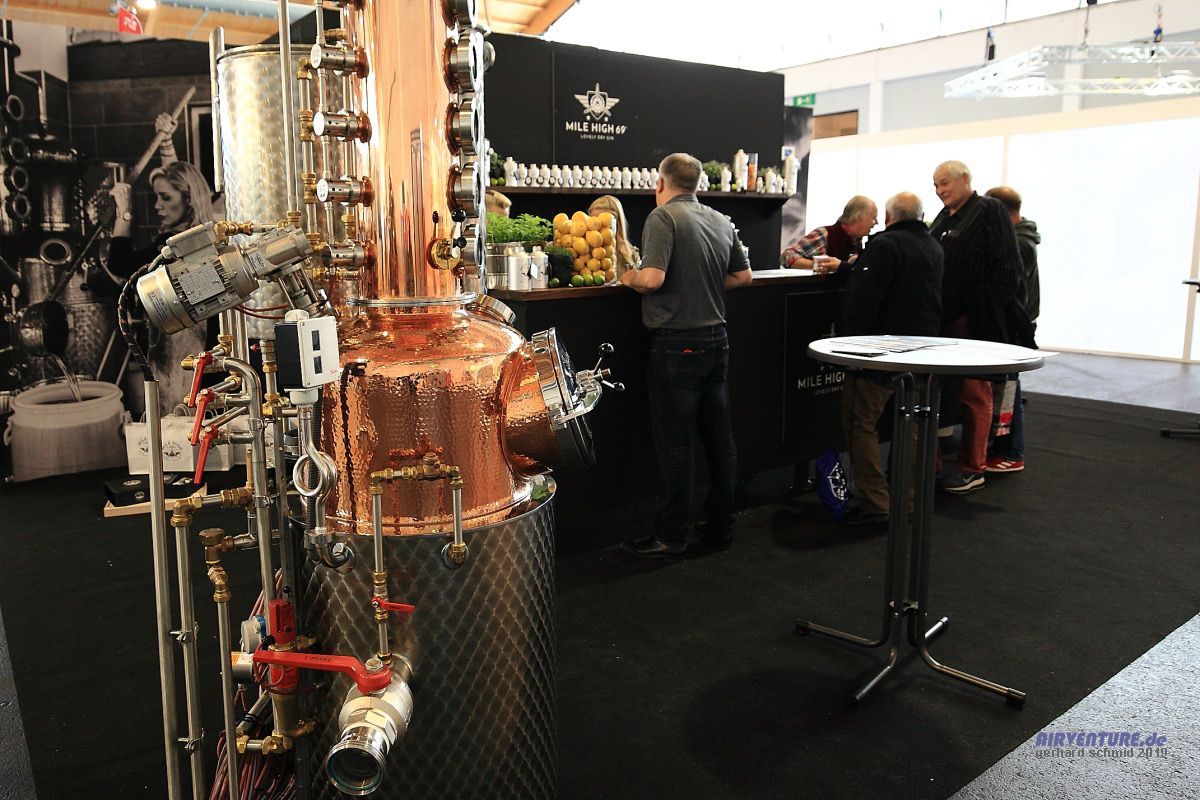 Einen eindrucksvollen Auftritt legte die erst vor wenigen Jahren gegründete Gin Destillerie Mile High 69 hin - inclusive der polierten Brennapparatur in glanzvollem Kontrat zum schwarzen Messestand.