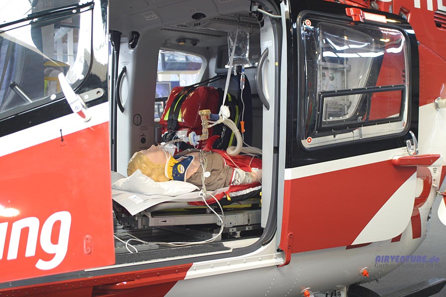 Anhand einer Puppe wurde bei geöffnetem Laderaum die Medizintechnik für den Rettungseinsatz demonstriert. |