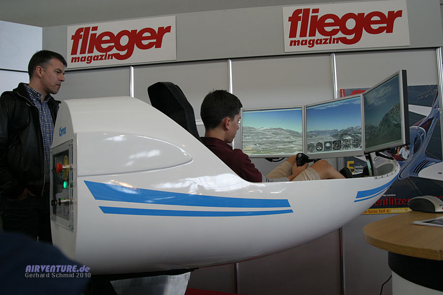 Am Stand des Flieger Magazin bot sich die Gelegenheit zu einem Schnupperflug im Segelflug-Simulator. |