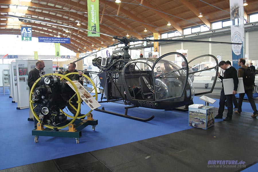 Gesellschaft zur Bewahrung von Stätten deutscher Luftfahrtgeschichte (GBSL) e.V. - hinter diesem langen Namen verbirgt sich ein Verein, der im Moment etwa 3000 historische Stätten der Luft- und Raumfahrtgeschichte in Deutschland dokumentiert. Der Alouette II Hubschrauber gehörte zur Ausstellung desr GBSL: |