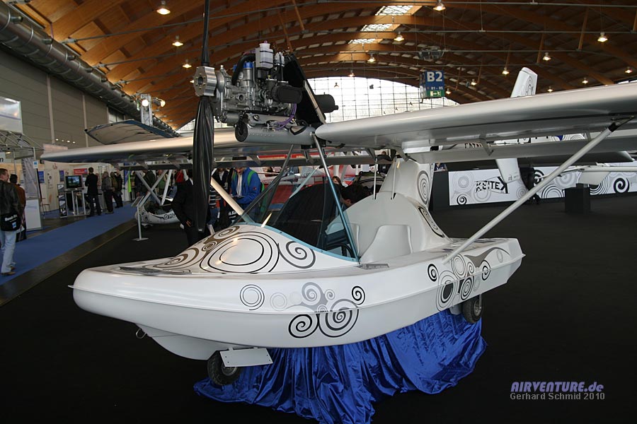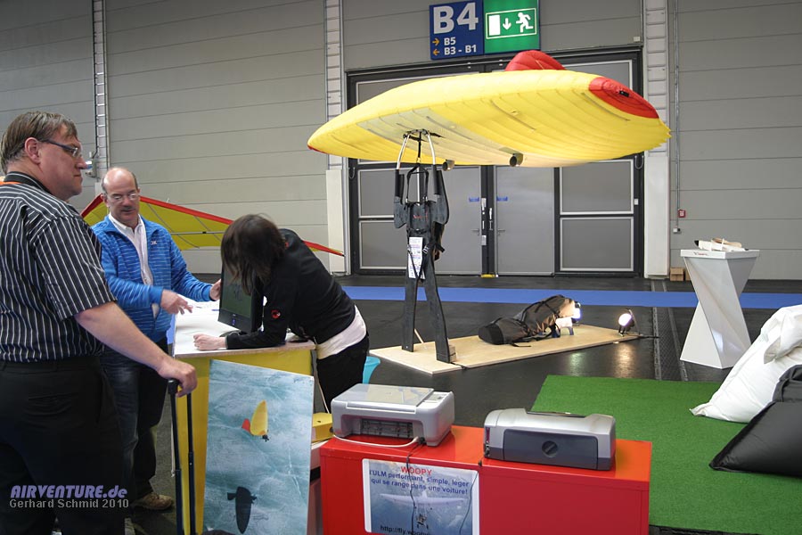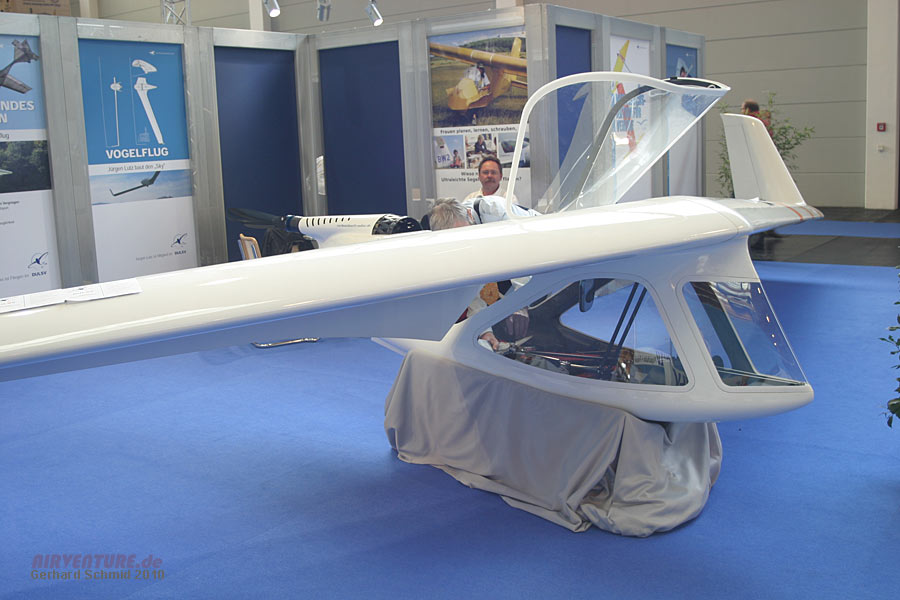 Die Idee des Horten Nurflügel-Segelflugzeugs wird hier modern umgesetzt im ultraleichten Motorsegler Swift, einer Konstruktion von Manfred Ruhmer, ausgestellt am Stand des deutschen Ultraleicht-Segelflugverbandes. |