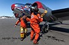 Mit den roten Survivalanzügen kommt man auch in Grönland noch ins Schwitzen: Jarda und Vaclav bereiten die Motoren der Electra für den Start vor - das Motoröl muss schließlich in allen Zylindern verteilt werden |