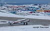 In Kanadas Norden geht es noch zünftig zu. In Kuujjack wurde die Maschine aus Fässern betankt. Am nächsten Morgen flog die Electra zum Zwischenstopp nach Iqualuit - einem der letzten Außenposten Kanadas. Dort legte die Crew die für lange Wasseretappen obligatorischen roten Survivalanzüge an und schon ging es über die Davisstraße nach Nuuk in Grönland. |