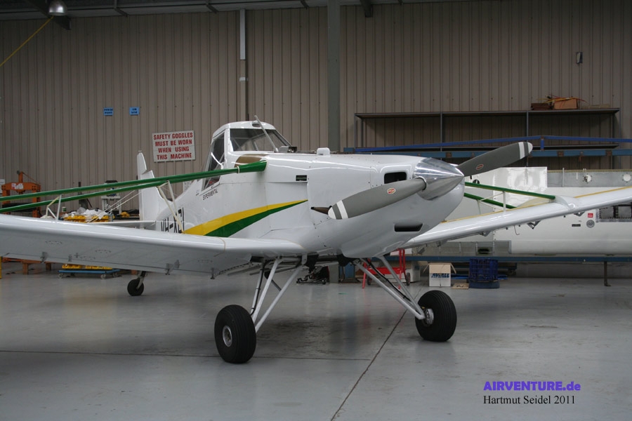 Das erste Produkt der Firma Gippsland Aeronautics war das Agrarflugzeug GA200, eine Weiterentwicklung der amerikanischen Piper Pawnee. Von den insgesamt 45 gebauten Gippsland Aeronautics GA 200 wurden 28 Maschinen ins Ausland exportiert, darunter auch diese ältere GA200 hier, aufgenommen im Jahre 2005 in Blenheim / Neuseeland. |