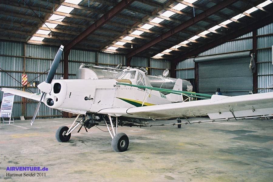 Eine Maschine der neueren und verbesserten Version des Agrarflugzeugs Gippsland Aeronautics GA200 mit der Bezeichnung "GA200 C". Gegenwärtig ruht die Produktion der GA200. Sobald die weltweite Nachfrage nach Agrarflugzeugen wieder steigt, kann aber die Herstellung dieses Flugzeugtyps bei GippsAero wieder aufgenommen werden. |